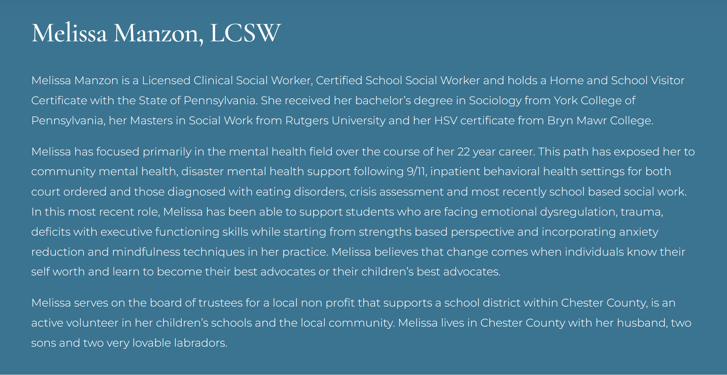 We have two physical locations in Pennsylvania: Plymouth Meeting (ZIP 19462) and Phoenixville (ZIP 19460). Telehealth sessions are also available to clients in PsyPact-approved states.